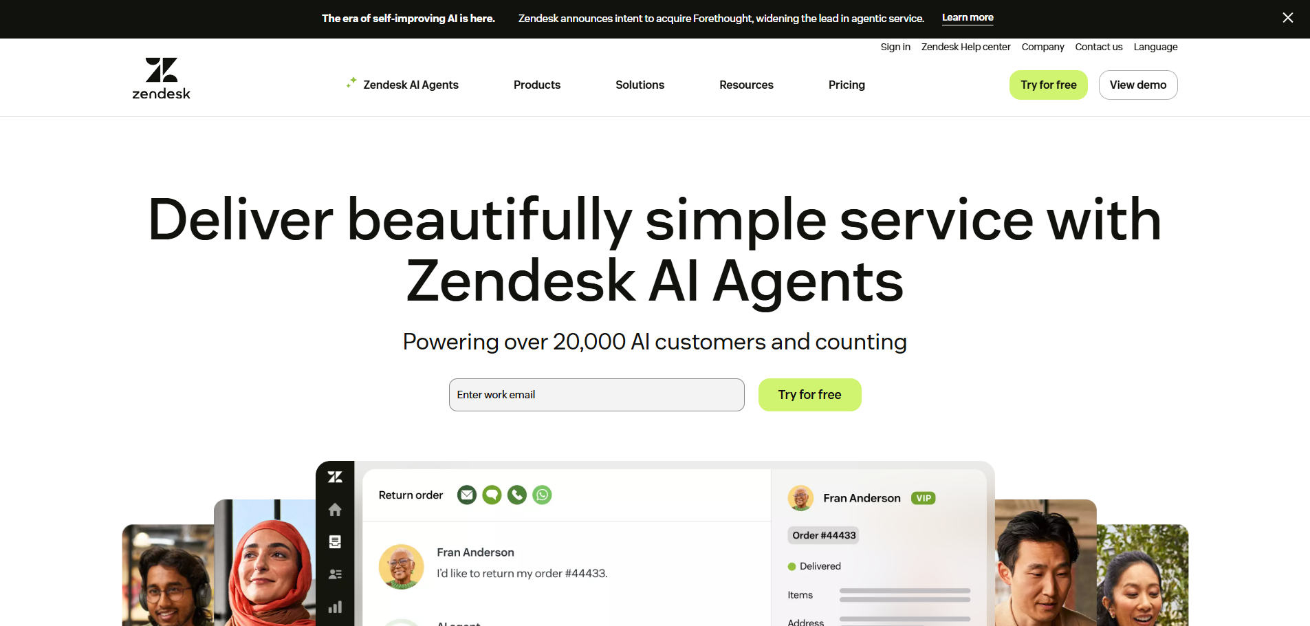 - AI agents (formerly Ultimate, acquired 2024) handle autonomous resolution for straightforward queries.
