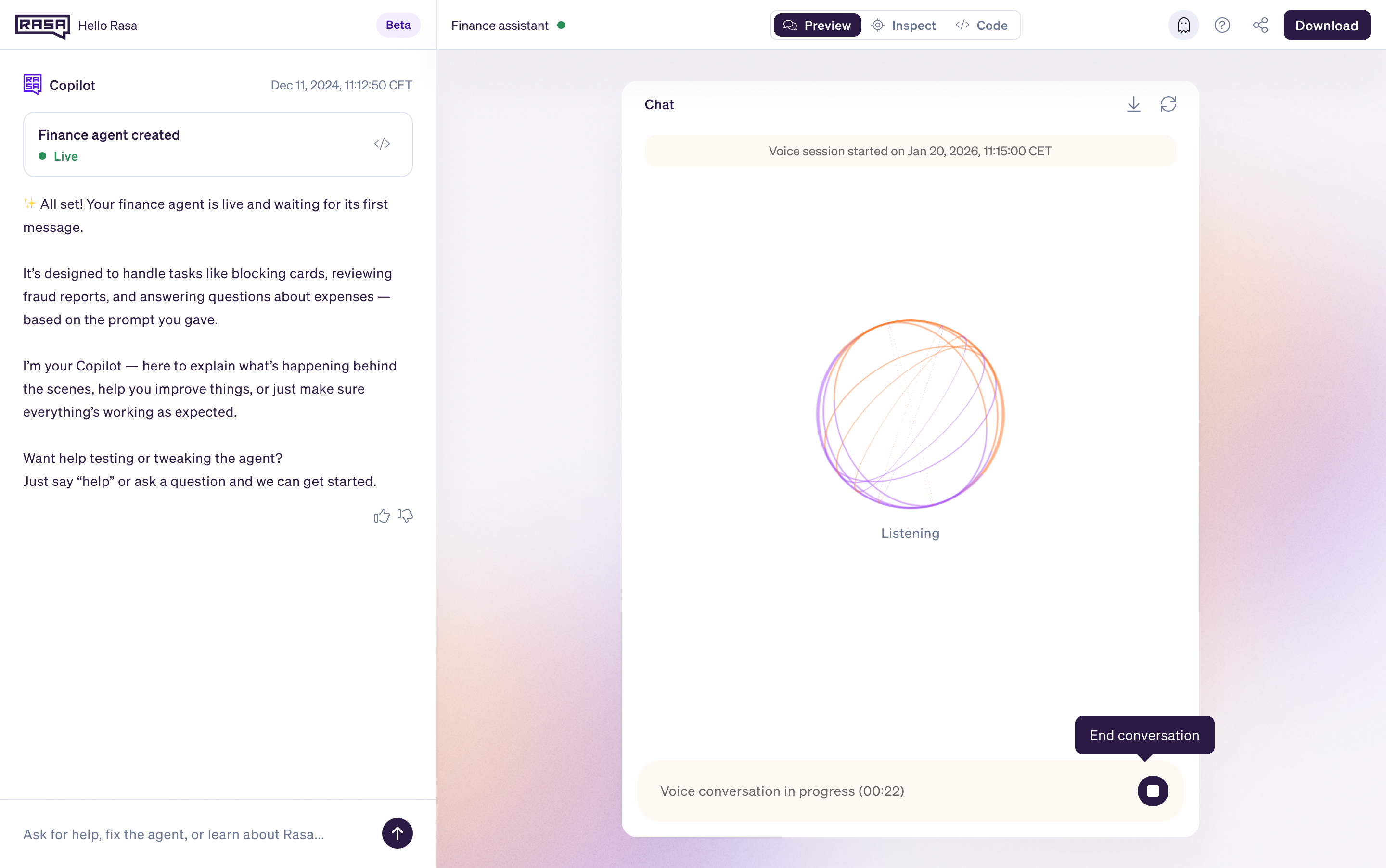 Rasa Voice is the voice agent capability inside Rasa, the developer platform for enterprise AI agents. Groupe IMA, Swisscom, and Deutsche Telekom use it to build voice experiences that run in their environment, under their controls.