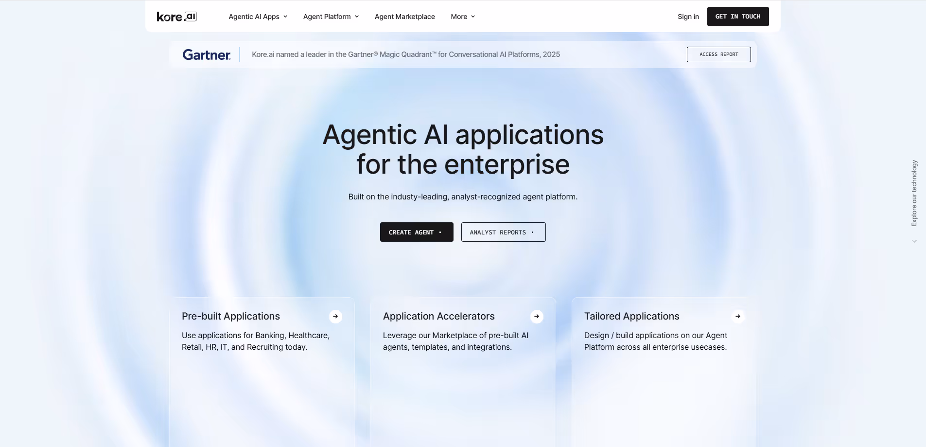 Kore.ai also serves financial services with on-premise deployment and pre-built banking workflows.