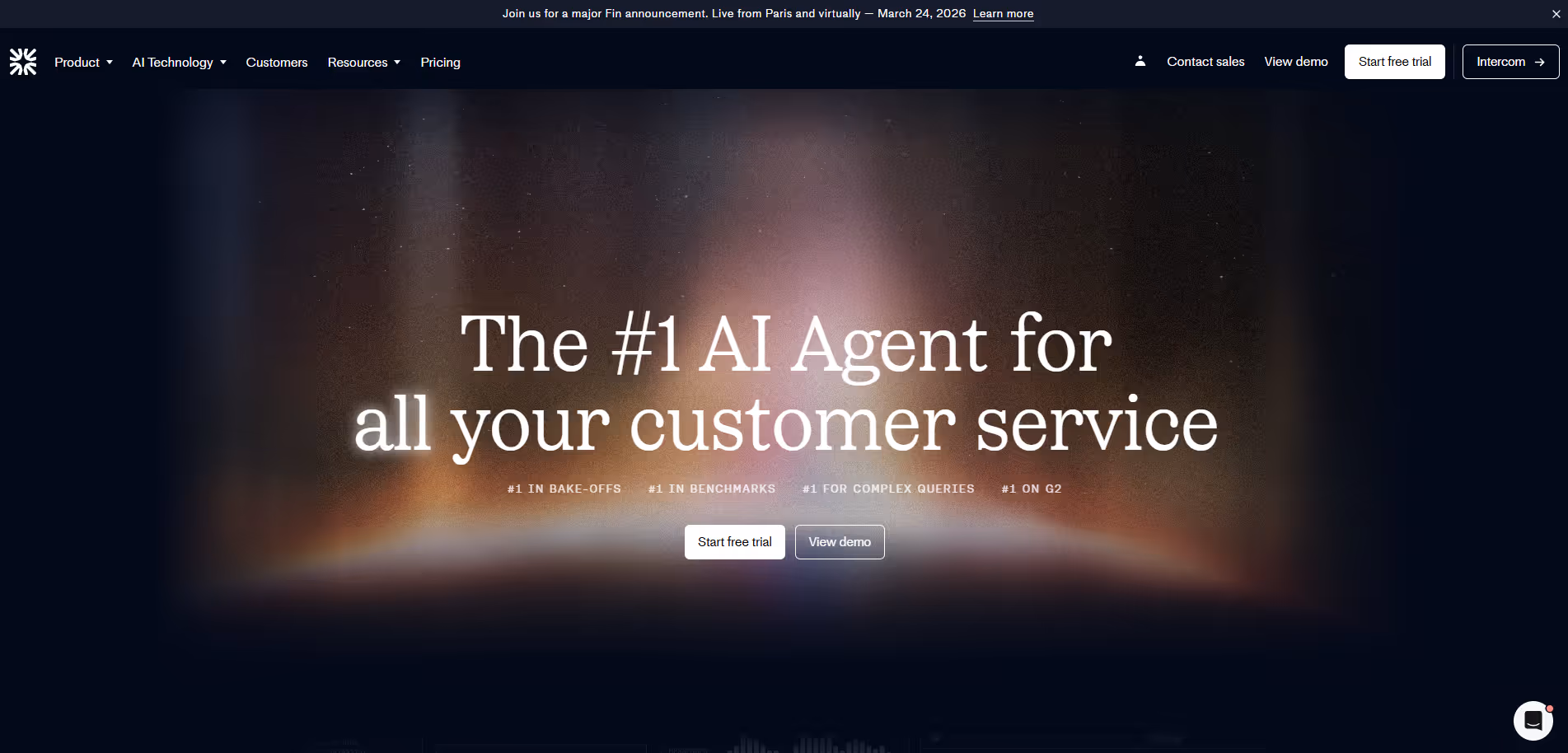 Fin is Intercom's AI agent, built directly into the Intercom customer service suite.