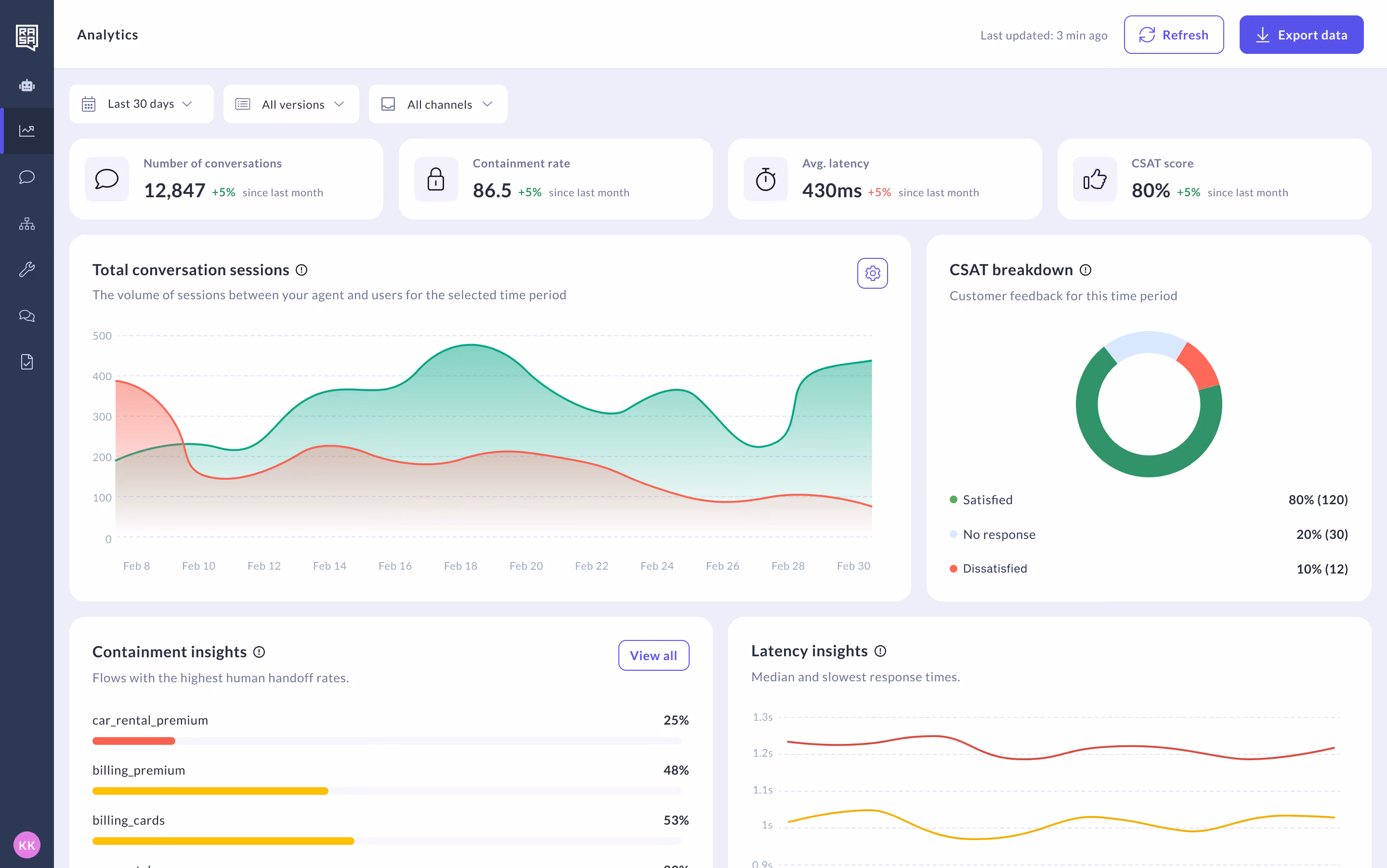 Rasa deploys in your environment. Its patented CALM dialogue manager combines LLM understanding with deterministic business logic. Every agent action is traceable. Rasa does not host any customer data, systems, or applications.