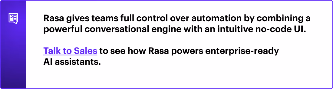 Connect with our expert team today to explore how the Rasa Platform can transform your support functions and workflows.