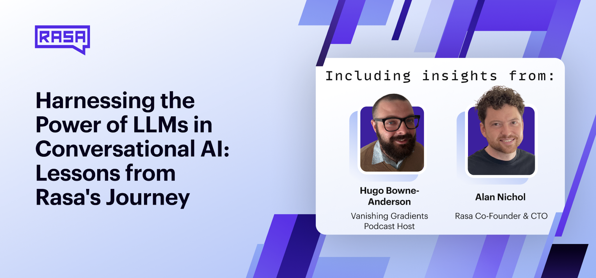 In a recent episode of the Vanishing Gradients podcast, Hugo Bowne-Anderson chatted with Alan Nichol, Rasa Co-Founder and CTO, to discuss the evolution of conversational AI and the impact of large language models (LLMs) on the industry. They discussed the history of chatbots, the challenges developers face, and Rasa’s innovative approach to harnessing the power of LLMs.