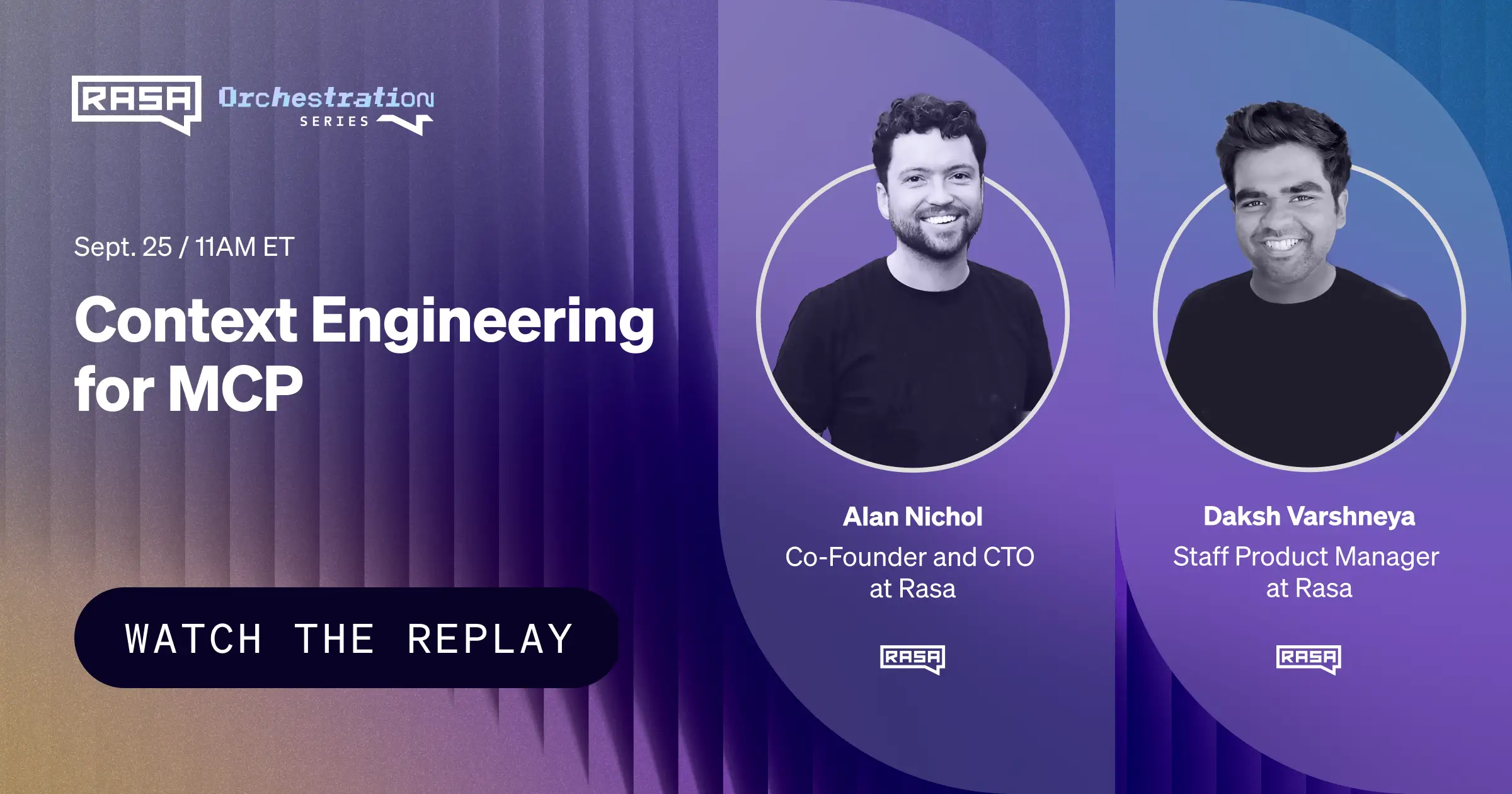 Join Alan Nichol, Rasa Co-Founder and CTO, Lauren Goerz, Sr. Technical Marketing Engineer, and Bertisa Grezda, Customer Success Manager, to learn how leading companies are moving beyond the risky "prompt-and-pray" methodology to develop reliable, secure, and scalable AI systems.