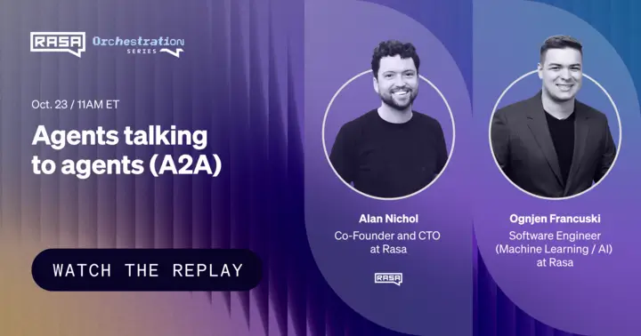 A2A provides a standard way to plug external agents into assistants as “black boxes” while still keeping the conversation smooth, contextual, and coherent. In this session, we’ll break down how Rasa uses A2A to let your assistant borrow skills from external specialized agents, when this approach makes sense (and when it doesn’t), and what design patterns actually work in production.